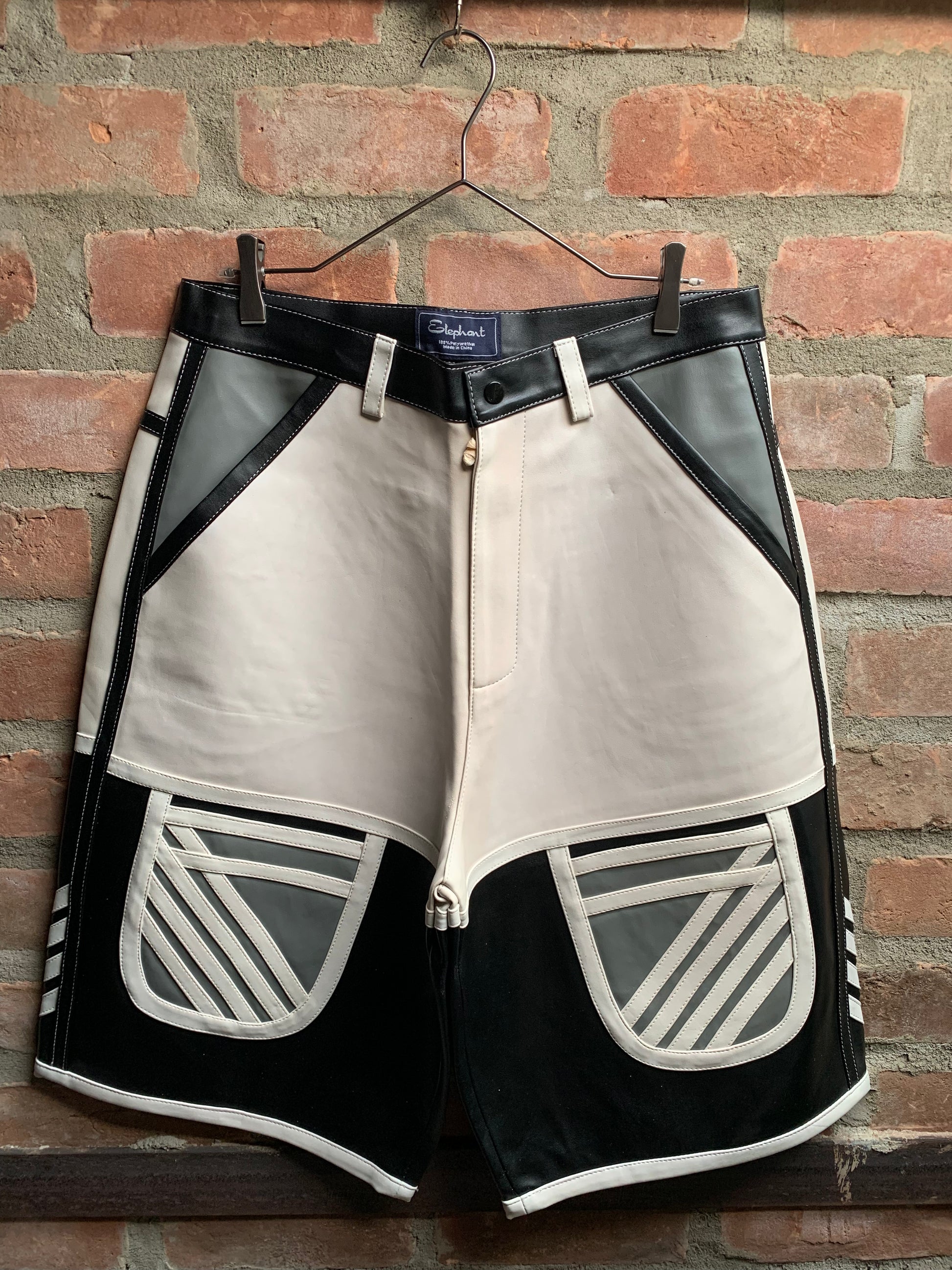Elephant Black and Gray Leather Shorts
